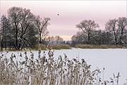 Проводить стаю уток решили окунек и ершик. Они выглянули из воды и замерли в удивлении, - весь берег, деревья и кусты, словно, кто-то выкрасил белой краской.